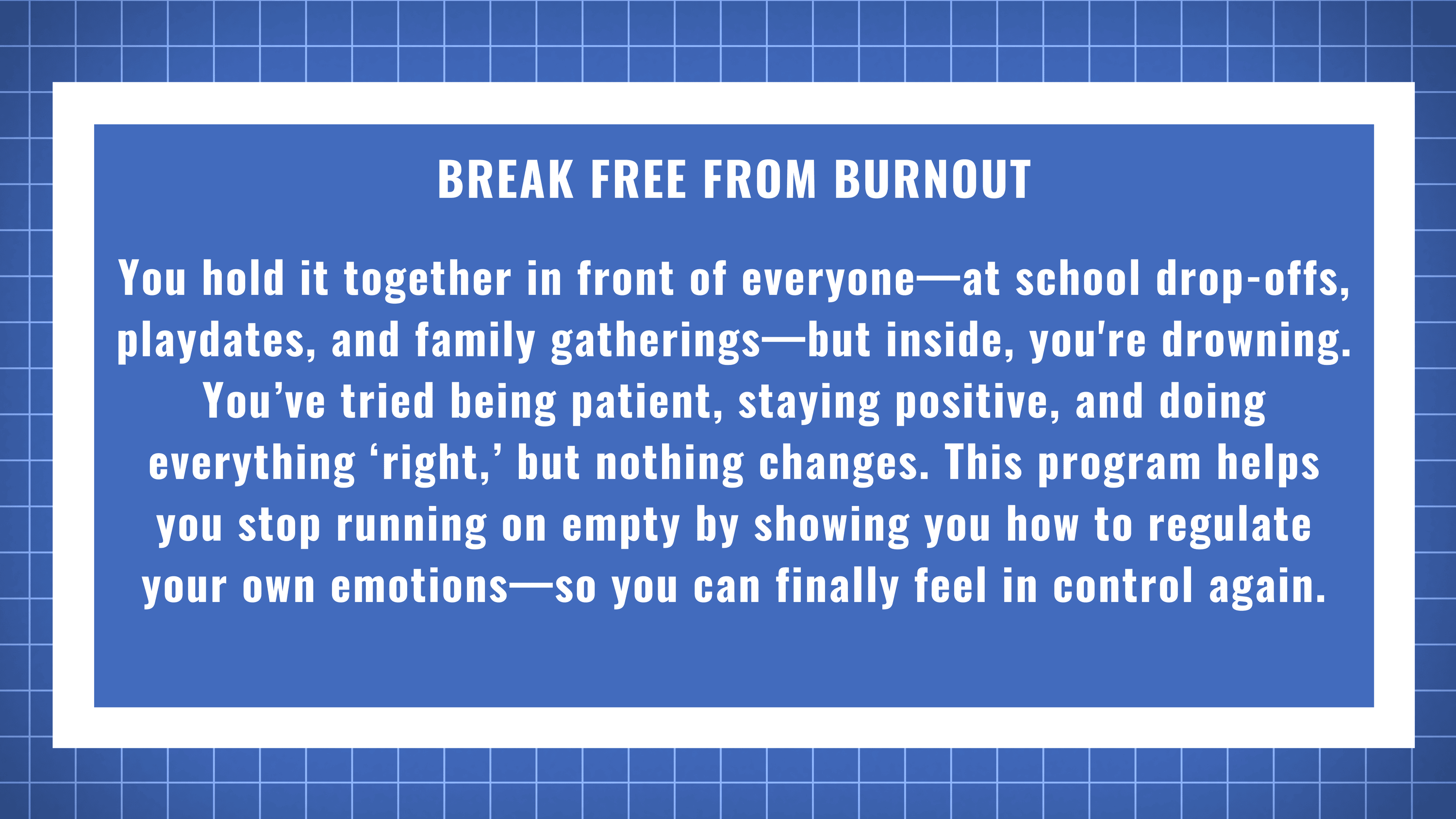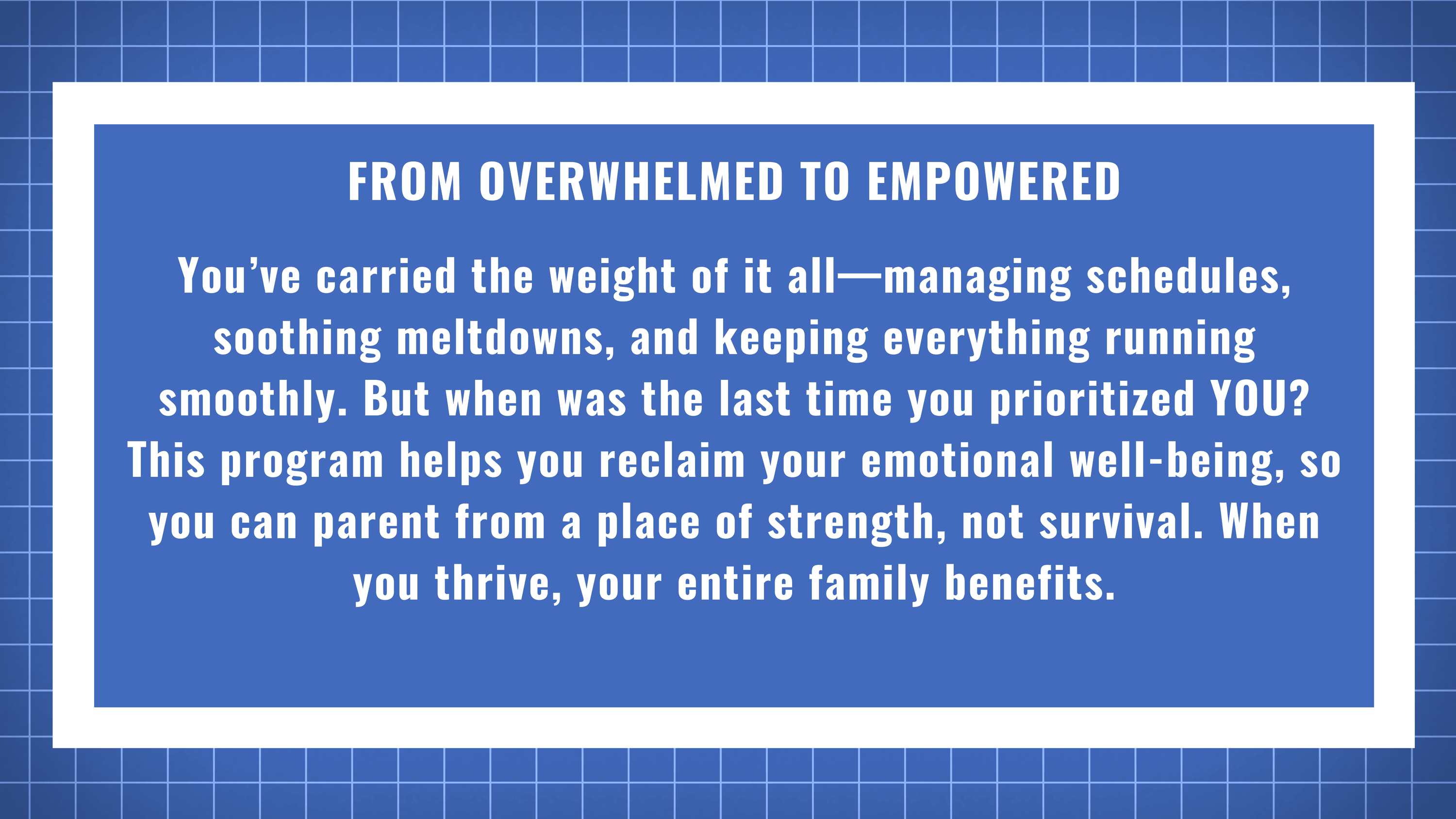 This program is your step-by-step guide to breaking free from burnout, creating emotional balance, and fostering a calm, connected home—no matter where life takes you.